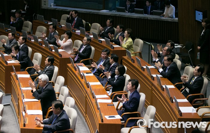 (서울=포커스뉴스) 19일 오후 서울 여의도 국회에서 열린 342회 국회(임시회) 1차 본회의에 참석한 의원들이 정의화 국회의장의 마무리 발언을 경청한 뒤 박수를 보내고 있다.