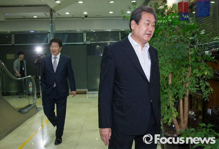 (서울=포커스뉴스) 19일 오후 서울 여의도 한 음식점에서 19대 국회 마지막 본회의를 마친 김무성(오른쪽) 전 새누리당 대표가 권성동 의원과 함께 본인이 주재로하는 식사모임에 참석하고 있다.