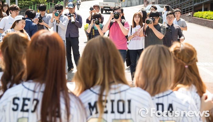 (서울=포커스뉴스) 19일 오후 서울 종로구 성균관대 캠퍼스에서 걸그룹 우주소녀의 멤버들이 'Y24 스쿨어택' 행사에 참여하고 있다.