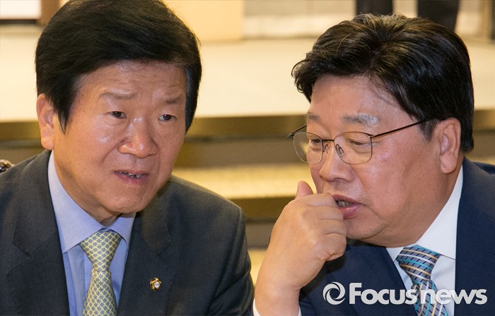 (서울=포커스뉴스) 19일 오후 여의도 서울시티클럽에서 열린 충청 향우 친선의 밤 행사에 참석한 권선택(오른쪽) 대전시장과 박병석 더불어민주당 의원이 대화하고 있다.