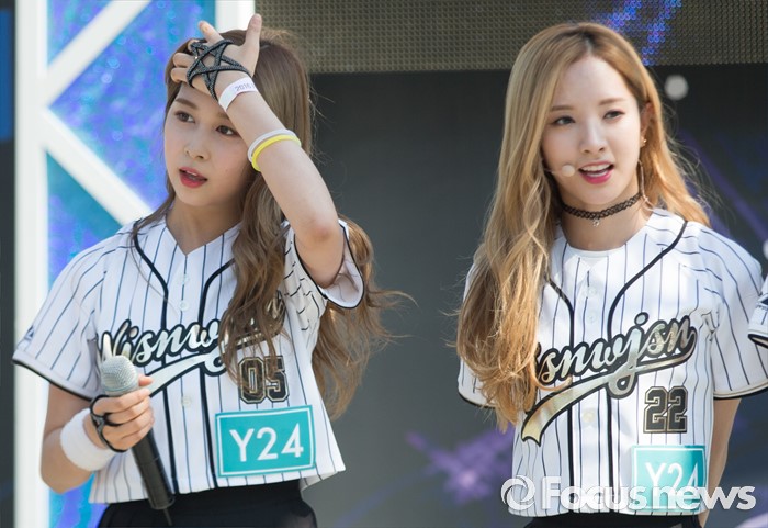 (서울=포커스뉴스) 19일 오후 서울 종로구 성균관대 캠퍼스에서 걸그룹 우주소녀의 멤버 다영(왼쪽)과 미기가'Y24 스쿨어택' 행사에 참여해 팬들에게 인사를 하고 있다.