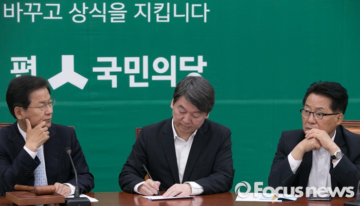 (서울=포커스뉴스) 안철수(가운데) 국민의당 상임공동대표, 천정배(왼쪽) 공동대표, 박지원 원내대표가 20일 오전 서울 여의도 국회에서 열린 최고위원회의에 참석해 생각에 잠겨 있다.