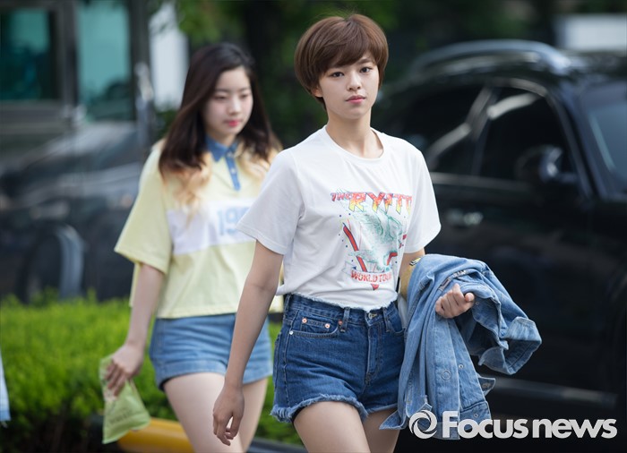 (서울=포커스뉴스) 20일 오전 서울 영등포구 KBS에서 걸그룹 트와이스의 멤버 정연(오른쪽)이 생방송 뮤직뱅크 리허설에 참여하기 위해 이동하고 있다.