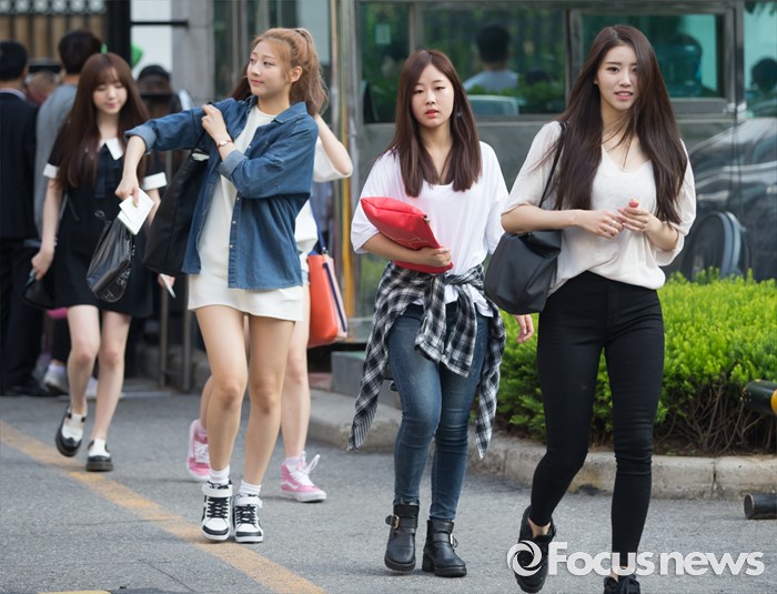 (서울=포커스뉴스) 20일 오전 서울 영등포구 KBS에서 걸그룹 러블리즈의 멤버들이 생방송 뮤직뱅크 리허설에 참여하기 위해 이동하고 있다.