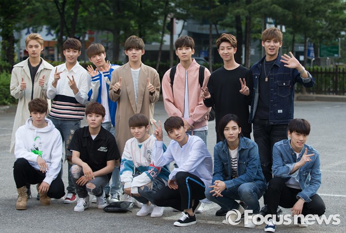 (서울=포커스뉴스) 20일 오전 서울 영등포구 KBS에서 아이돌그룹 세븐틴의 멤버들이 생방송 뮤직뱅크 리허설에 참여하기 위해 이동하던 중 포토타임을 갖고 있다.