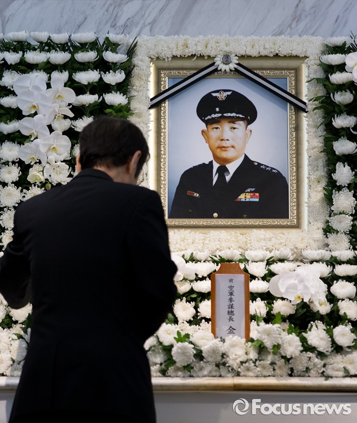 (서울=포커스뉴스) 20일 오전 서울 서대문구 신촌세브란스병원 장례식장에 마련된 백범 김구 선생의 아들 김신 전 공군참모총장 빈소에 조문행렬이 이어지고 있다.