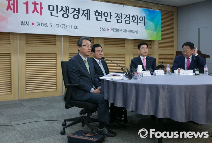 (서울=포커스뉴스) 20일 오전 서울 여의도 국회 의원회관에서 열린 1차 민생경제현안점검회의에 참석한 김성식 국민의당 정책위의장이 모두발언을 하고 있다. 왼쪽부터 김성식 국민의당 정책위의장, 변재일 더불어민주당 정책위의장, 김광림 새누리당 정책위의장, 유일호 경제부총리 겸 기획재정부 장관.