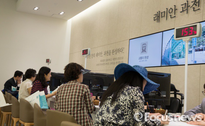 (서울=포커스뉴스) 20일 오전 서울 송파구 래미안 하우스에 개관한 래미안 과천 센트럴 스위트 견본주택을 찾은 시민들이 관련상담을 받고 있다.