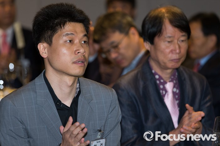 (서울=포커스뉴스) 양건(왼쪽) 프로기사회 회장이 20일 오전 서울 종로구 플라자호텔에서 열린 한국기원 맥심커피배 시상식에 참석해 박수치고 있다.