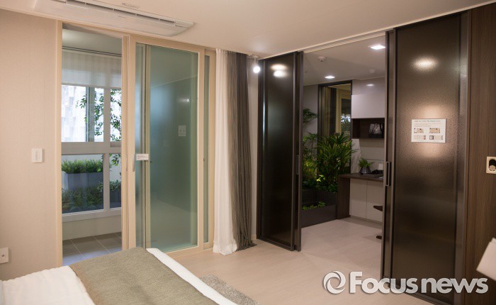 (서울=포커스뉴스) 20일 오전 서울 송파구 래미안 하우스에 개관한 래미안 과천 센트럴 스위트 견본주택에 전시된 안방 견본.