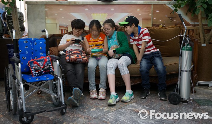 (대전=포커스뉴스) 아타 사프달 옥시레킷벤키저 대표가 20일 오후 대전 유성구 아드리아호텔에서 옥시의 가습기 살균제 제품 피해자와 면담을 마련한 가운데 피해 어린이들이 핸드폰 게임을 하고 있다.