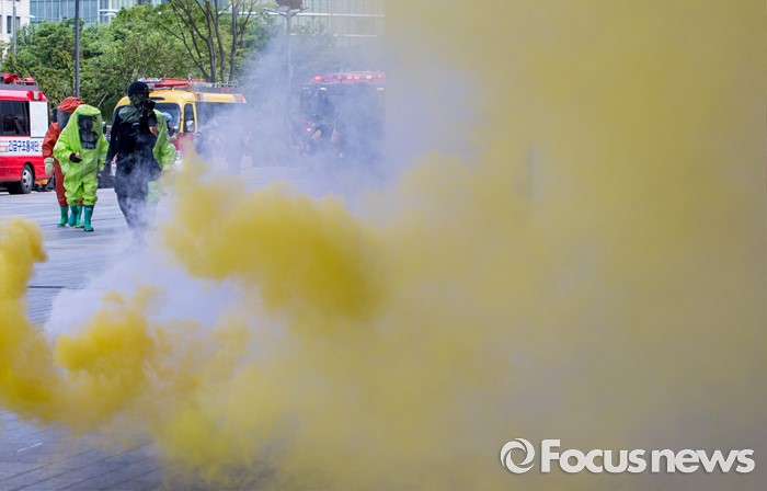 (서울=포커스뉴스) 20일 오후 서울 강남구 코엑스에서 열린 '2016 재난대응 안전한국훈련'에 참여한 훈련병력들이 테러대응훈련을 펼치고 있다.