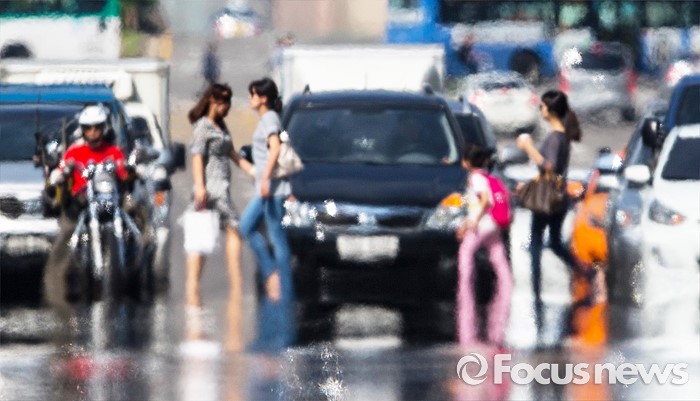 (서울=포커스뉴스) 서울에 올해 첫 폭염주의보가 내려진 20일 오후 서울 영등포구 여의대로 위에 지열로 인한 아지랑이가 피어오르고 있다.