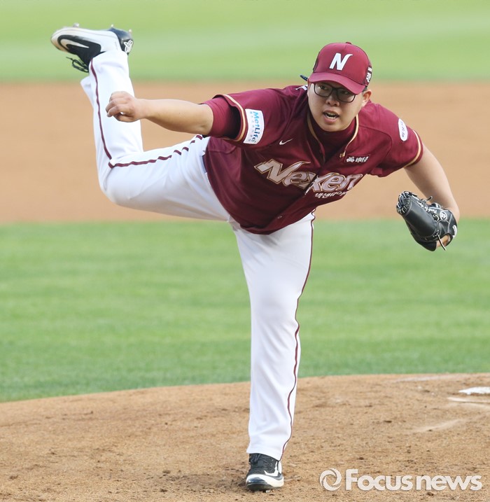 (서울=포커스뉴스) 20일 서울 잠실구장에서 열린 2016 프로야구 넥센-LG 경기에서 1회말 넥센 선발투수 박주현이 투구하고 있다.