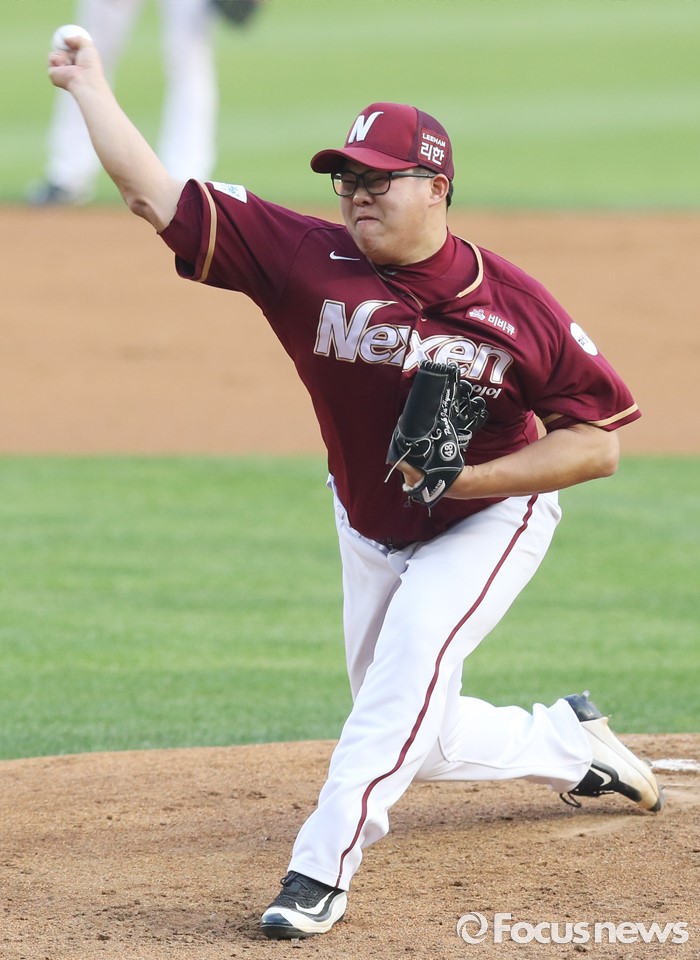(서울=포커스뉴스) 20일 서울 잠실구장에서 열린 2016 프로야구 넥센-LG 경기에서 1회말 넥센 선발투수 박주현이 투구하고 있다.