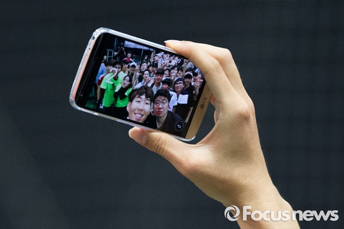 (서울=포커스뉴스) 손흥민이 20일 오후 서울 용산구 아이파크몰 풋살경기장에서 열린 아디다스 손흥민 팬미팅 및 사인회에서 팬들과 셀카를 찍고 있다.