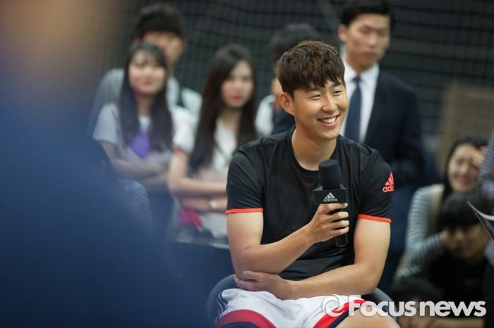 (서울=포커스뉴스) 손흥민이 20일 오후 서울 용산구 아이파크몰 풋살경기장에서 열린 아디다스 손흥민 팬미팅 및 사인회에서 팬들과 근황토크를 하고 있다.