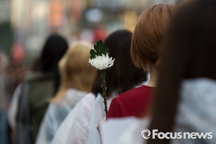 (서울=포커스뉴스) 21일 오후 서울 서초구 강남역 10번 출구 인근에서 시민들이 '강남역 여성혐오 살인사건 추모 집회'에 참석해 행진하고 있다.