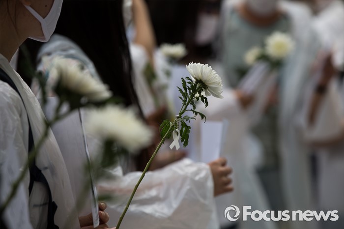 (서울=포커스뉴스) 21일 오후 서울 서초구 강남역 10번 출구 인근에서 시민들이 '강남역 여성혐오 살인사건 추모 집회'에 참석해 행진을 준비하고 있다.