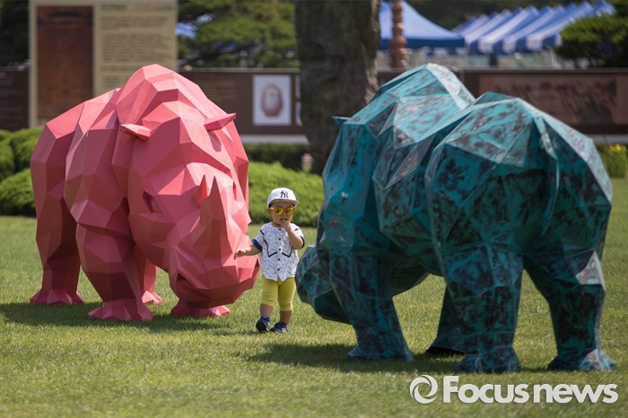 (서울=포커스뉴스) 22일 오전 서울 여의도 국회 잔디마당에서 열린 '2016 열린국회마당' 축제에서 한 어린이가 잔디밭에 놓인 대형 전시물을 보고 있다.