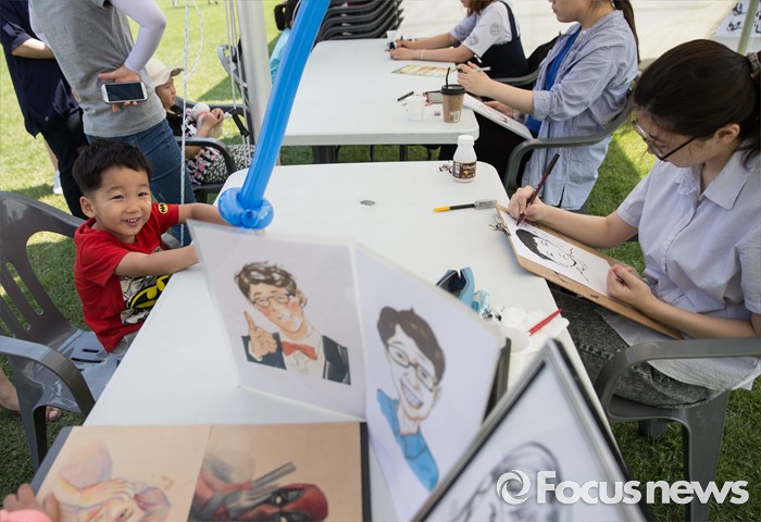 (서울=포커스뉴스) 22일 오전 서울 여의도 국회 잔디마당에서 열린 '2016 열린국회마당' 축제에서 한 어린이가 캐리커쳐 부스에 앉아 순서를 기다리고 있다.