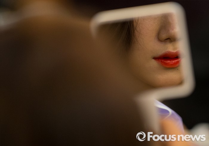 (서울=포커스뉴스) 22일 오전 서울 서초구 더케이호텔 아트홀에서 열린 피트니스 대회 'WBFF 아시아 챔피언십'에 참가한 선수들이 대기실에서 화장을 고치고 있다.