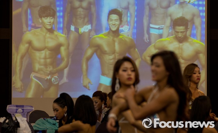 (서울=포커스뉴스) 22일 오전 서울 서초구 더케이호텔 아트홀에서 열린 피트니스 대회 'WBFF 아시아 챔피언십'에 참가한 선수들이 대회를 준비하고 있다.
