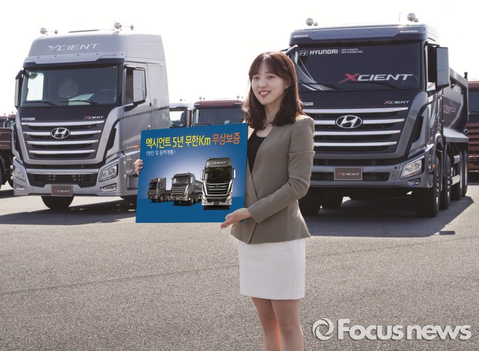 (서울=포커스뉴스) 현대자동차가 상용 대형트럭 엑시언트의 엔진·동력 계통 5년 무한 보증 서비스를 진행한다.
