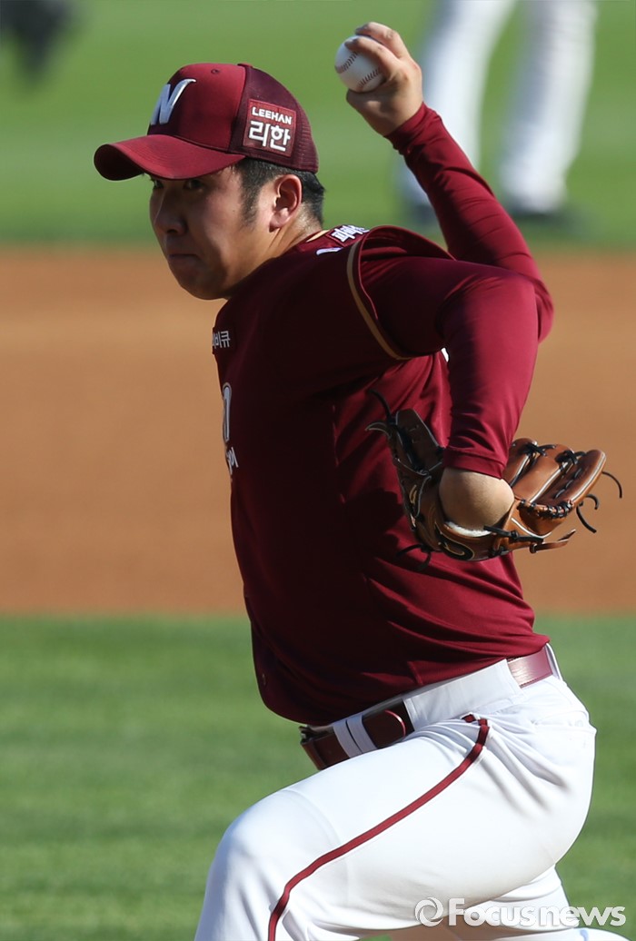 (서울=포커스뉴스) 22일 서울 잠실구장에서 열린 2016 프로야구 넥센-LG 경기에서 1회말 넥센 선발투수 신재영이 투구하고 있다.
