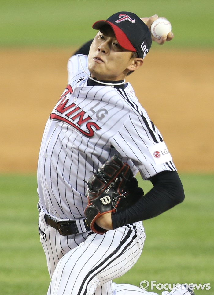 (서울=포커스뉴스) 22일 서울 잠실구장에서 열린 2016 프로야구 넥센-LG 경기에서 LG 마무리 투수 임정우가 9회 넥센 김하성에게 투구하고 있다.