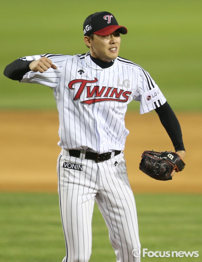 (서울=포커스뉴스) 22일 서울 잠실구장에서 열린 2016 프로야구 넥센-LG 경기에서 LG 마무리 투수 임정우가 넥센 서건창을 삼진으로 잡고 경기를 끝내며 주먹을 불끈 쥐며 환호하고 있다.