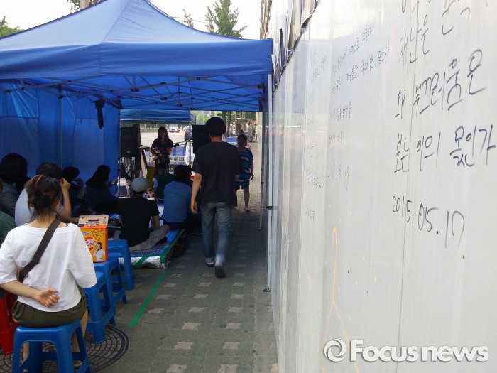 22일 오후 서울 종로구 무악동 옥바라지 골목 앞에 설치된 작은 천막 아래로 하나둘 사람들이 모여들었다. 조용한 기타의 선율이 하늘에 울려 퍼지자 모인 이들은 금세 저마다의 아쉬움과 분노, 억울함 같은 감정들을 토해내듯 쏟아냈다.