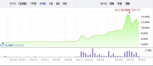 4월 초(4975원) 주가와 비교했을 때 129% 상승하는 등 보성파워텍의 주가는 꾸준히 상승곡선을 그려왔다. 그렇지만 이날 14%의 낙폭을 기록하면서 하락 흐름으로 돌아선 것 아니냐는 의견이 나오고 있다.