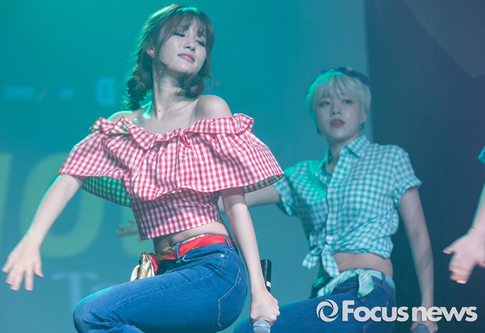 (서울=포커스뉴스) 23일 오전 서울 마포구 하나투어 브이홀에서 열린 걸그룹 타히티의 '알쏭달쏭' 쇼케이스에 참여한 멤버 지수(왼쪽)와 아리가 무대를 선보이고 있다.