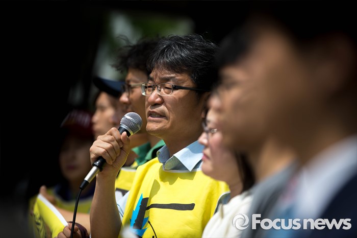 (서울=포커스뉴스) 23일 오전 서울 서초구 서울중앙지검 앞에서 가습기 살균제 피해자와 가족모임 관계자들이 기자회견을 열고 유해독성물질을 승인‧방치한 국가를 상대로 법정소송에 돌입할 것을 밝히고 있다. 피고발인은 강현욱·김명자 전 환경부 장관과 가습기 살균제 성분들이 승인될 당시 환경부 환경보건관리과 국장·과장 등 실무진 6명 이다.