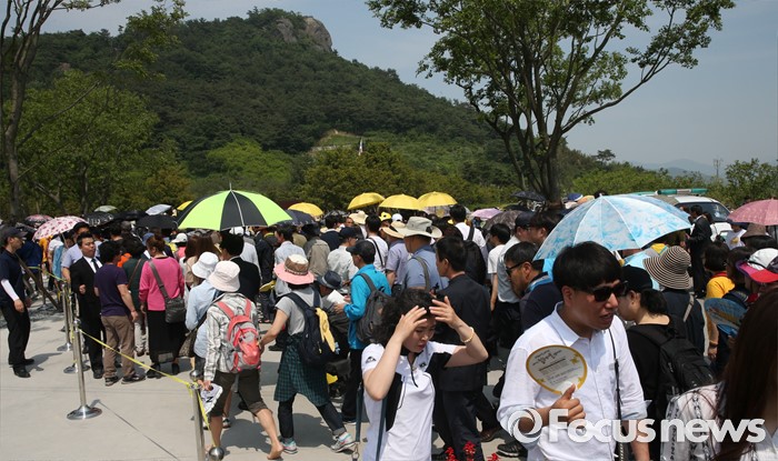(김해=포커스뉴스) 23일 오후 경남 김해 봉하마을에서 엄수된 故 노무현 전 대통령 서거 7주기 추도식에 추도객들이 입장하고 있다.