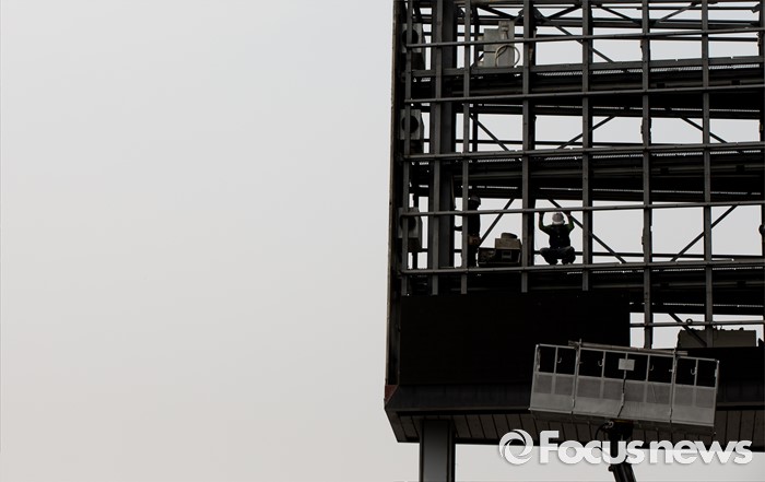 (서울=포커스뉴스) 23일 오후 서울 중구 태평로 프레스센터 옥외 전광판 위에서 관계자들이 보수 및 교체 작업을 하고 있다.