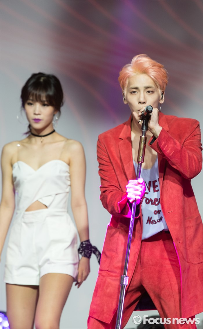 (서울=포커스뉴스) 23일 오후 서울 강남구 플래툰 쿤스트할레에서 가수 종현이정규 1집 앨범 '좋아'를 발표하고 무대를 선보이고 있다.