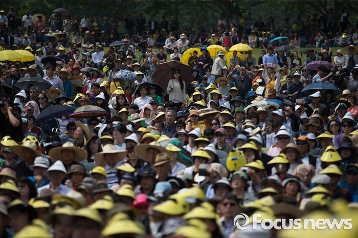 (김해=포커스뉴스) 23일 오후 경남 김해시 진영읍 봉하마을에서 열린 '故 노무현 전 대통령 서거 7주기 추도식'에서 故 노무현 전 대통령 묘역을 찾은 추도객들이 추도식에 참석하고 있다.