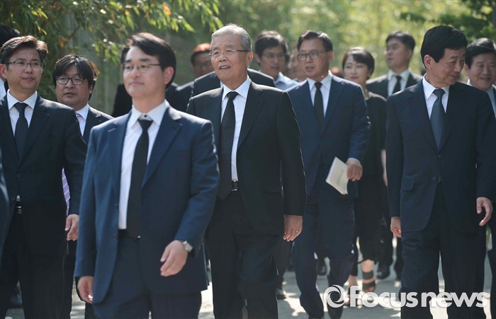 (김해=포커스뉴스) 23일 오후 경남 김해 봉하마을에서 엄수된 故 노무현 전 대통령 서거 7주기 추도식에 참석한 김종인 더불어민주당 비대위 대표 등이 노 전 대통령 사저를 방문한 뒤 나서고 있다.