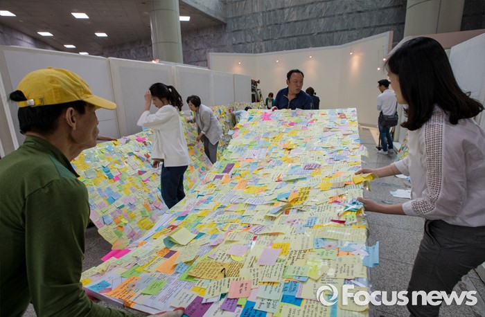 | △ 추모 전시장으로 향하는 포스트잇 |