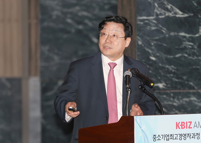 중소기업 최고경영자 과정 입학식 참석, 강연하는 주형환 장관