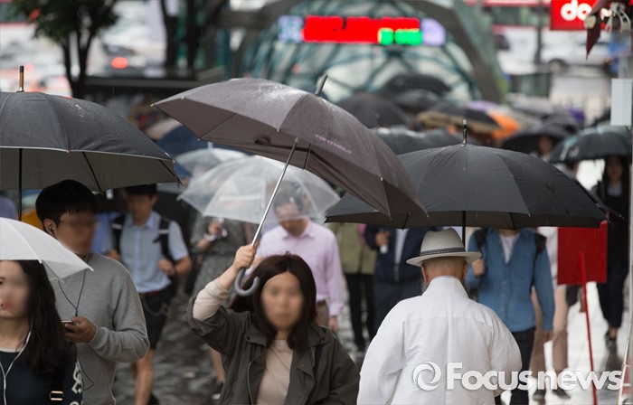(서울=포커스뉴스) 전국이 흐리고 비가 내리는 24일 오전 서울 강남구 강남역 인근에서 시민들이 발걸음을 재촉하고 있다.