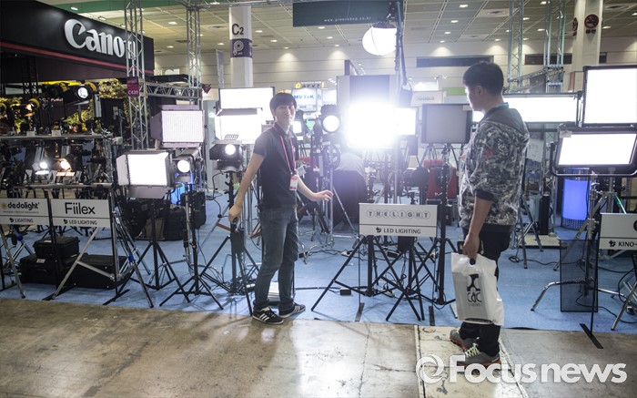 (서울=포커스뉴스) 24일 오전 서울 강남구 코엑스에서 열린 '제26회 국제 방송·음향·조명기기 전시회'를 찾은 한 관람객이 조명장치를 살펴보고 있다.