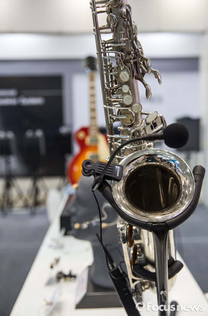 (서울=포커스뉴스) 24일 오전 서울 강남구 코엑스에서 열린 '제26회 국제 방송·음향·조명기기 전시회'의 한 부스에 전시된 마이크 장치.