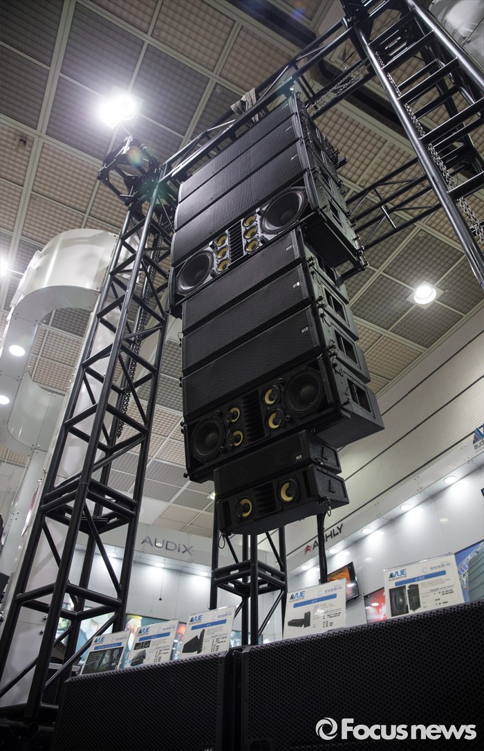 (서울=포커스뉴스) 24일 오전 서울 강남구 코엑스에서 열린 '제26회 국제 방송·음향·조명기기 전시회'의 한 부스에 전시된 스피커.