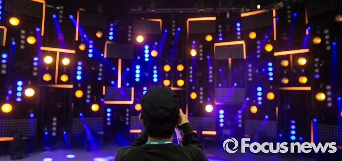 (서울=포커스뉴스) 24일 오전 서울 강남구 코엑스에서 열린 '제26회 국제 방송·음향·조명기기 전시회'를 찾은 한 관람객이 조명장치를 카메라에 담고 있다.