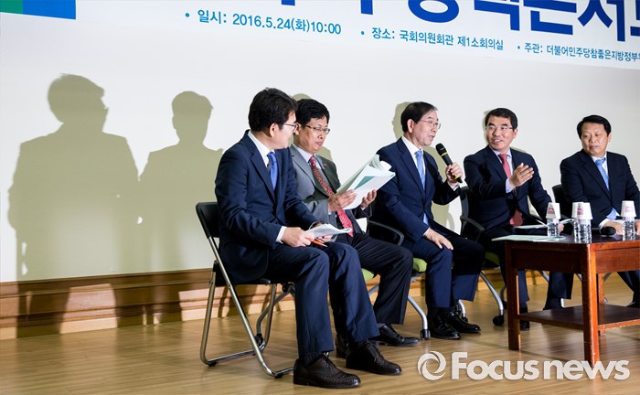 (서울=포커스뉴스) 박원순(왼쪽 세 번째) 서울시장이 24일 오전 서울 여의도 국회의원회관에서 열린 '더불어민주당, 지자체장 초청 일자리 정책 콘서트'에 참석해 서울시 일자리 정책에 관해 설명 하고 있다.
