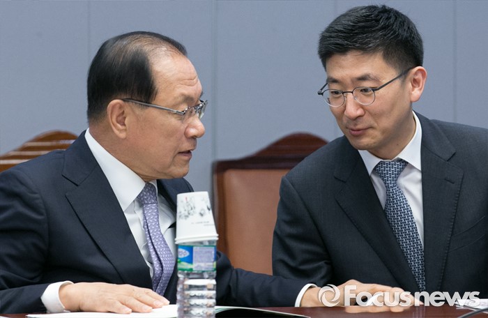 (서울=포커스뉴스) 24일 오후 서울 여의도 국회 의원회관에서 열린 국회선진화법 평가와 발전 방안 토론회에 참석한 황우여(왼쪽), 김세연 새누리당 의원이 대화하고 있다.
