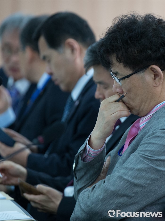 (세종=포커스뉴스) 24일 오후 세종시 정부세종청사 교육부 대회의실에서 열린 시·도교육청 교육국장 회의에서 참석자가 회의에 앞서 생각에 잠겨 있다.